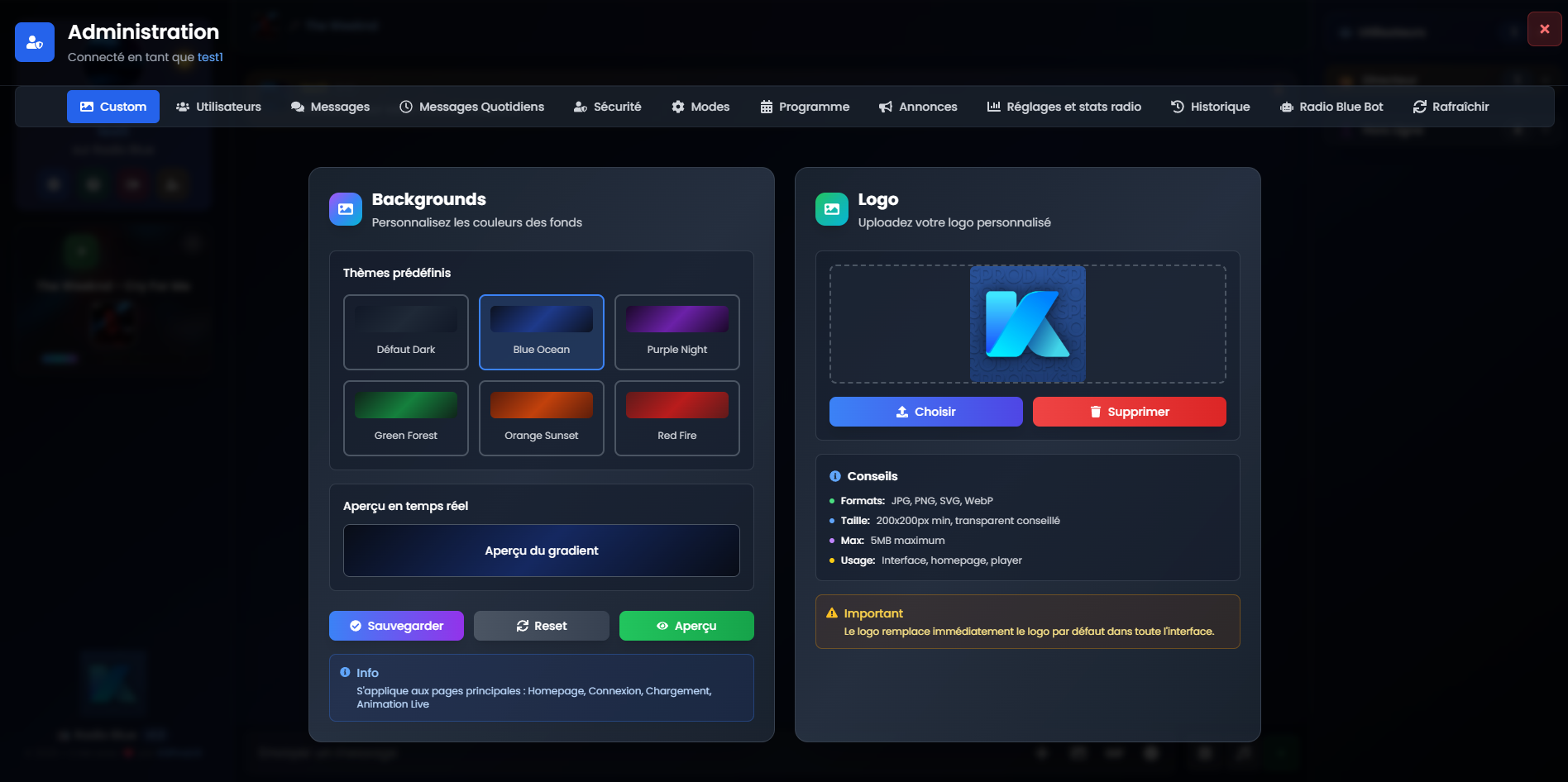 Découvrez notre interface radio web interactive révolutionnaire qui transforme votre station en plateforme moderne et engageante. Cette interface radio web interactive intègre un chat temps réel, un lecteur audio HD et un panel d'administration complet pour créer l'expérience radio ultime. Notre solution SaaS vous permet de déployer votre interface radio web interactive en quelques minutes seulement.